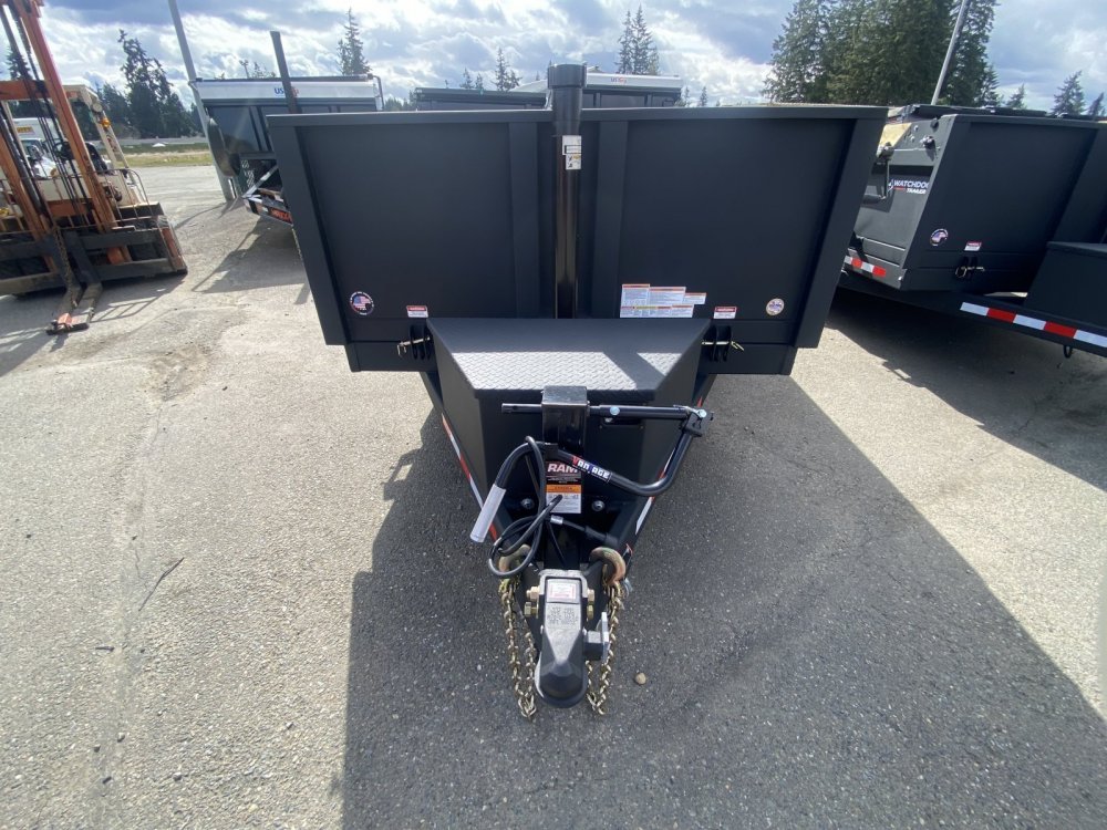 Features: 2' Sides, 2 5/16" Ball, 7 Gauge Floor, Adjustable Coupler, D-Rings, Pull-back Tarp, Slide-In Ramps, Spare Tire, Spare Tire Mount, Toolbox, Underslug Box, 14 Ply Tires, 12" OC Crossmembers