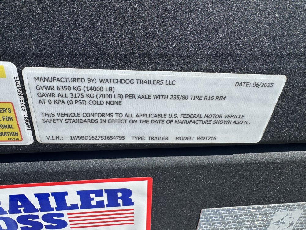 2025 Watchdog 7x16 14,000 Dump- S1654795